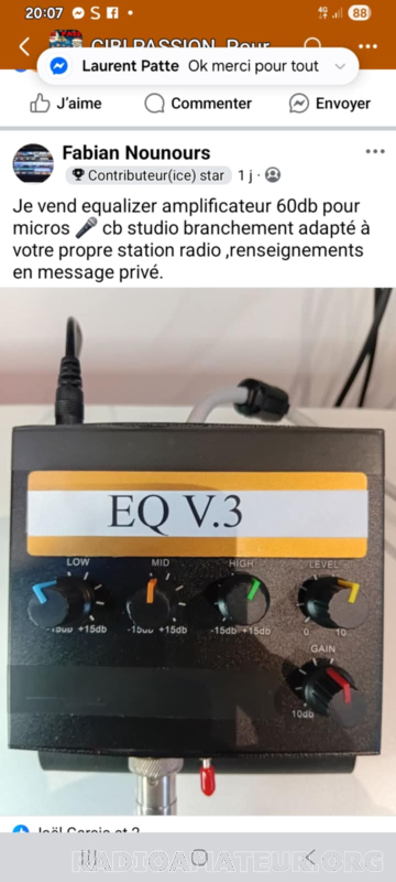 Je vends des équalizers 3 bandes amplification 60db adaptables sur tout émetteurs