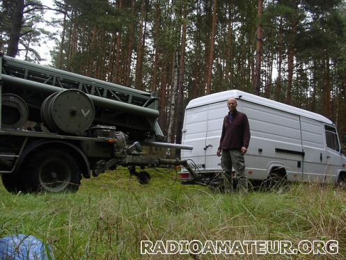 Pylone Aluminium telescopique QRO 25/30/35/40 m SALZGITTER SMAG ex Militaire, mis en place tres vite et simple, sur une remorque de 3500 kg-4000kg , Modele actuel 2003 (Prix neuf €400.000!), fret 1,-/km de Luxembourg, Prix € 9900 (25 m), plusieurs mats disponible et aussi des Rotors heavy duty (100€), double (200€) et AZ/EL (400€), Hilmar, DF9PF
