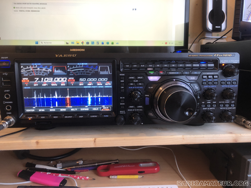 Bonjour, je vends mon ICOM 7100 en parfait état quasi neuf HF, VHF, UHF ayant juste servi pour démarrage sur QO-100 complet avec tous ses accessoires.jamais ouvert vraiment dans état d'origine. Jamais installé en mobile toujours resté sur étagère, pas de griffures ni rayures Manuel FR et carton d’origine. Apprendre à mon domicile ou envoi sérieux en double emballage. Photos supplémentaires sur demande valeur neuf 1500 euros 73’