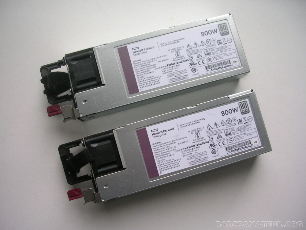 Vends 2 blocs alimentation 12V DC 66A HP HSTNS-PC41-1 pour réalisation alimentation 24V 66A .Ces 2 blocs alimentation peuvent être mis en série pour obtenir 24V 66A. La documentation est fournie pour la modification. Prix de l'ensemble 50 Euros + port. Comptez 15 Euros de port via Mondial Relay et 19,50 Euros via Colissimo.