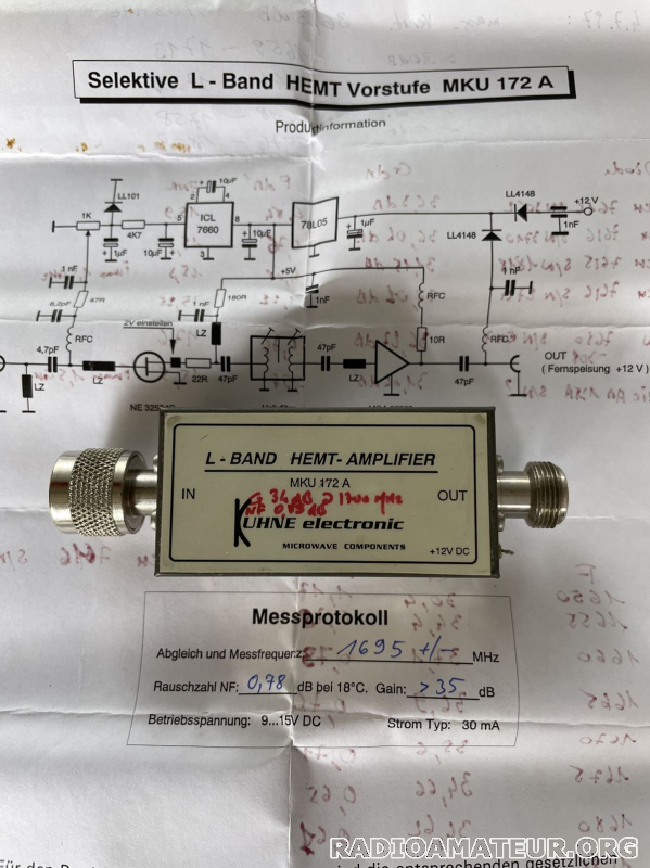 Ampli faible bruit 1,7 GHz NF=0,78 dB G=35 dB Enlèvement sur place ou port en sus si expédition.