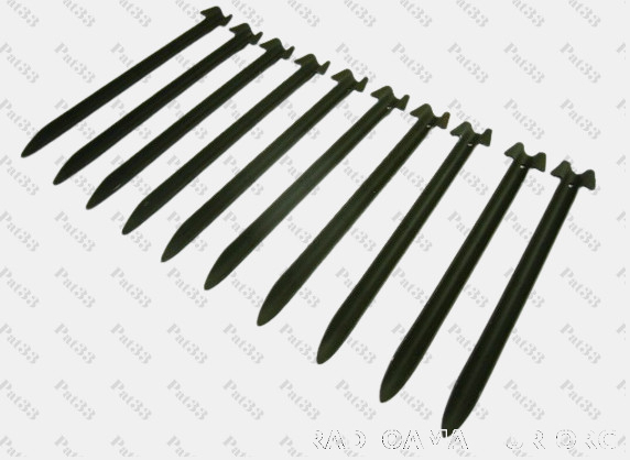 Lot de 10 sardines neuves, ancien stock de l’armée, de très bonne qualité et très solide (rien à voir avec les sardines du commerce qui se tordent au moindre coup de marteau). La forme du piquet est étudiée pour ne pas se tordre lors de la frappe tout en n'étant pas trop lourds (90gr par piquet) épaisseur acier : 2mm. Longueur 24cm. idéale pour une excursion en pleine nature. Plusieurs lots en stock Piquets de stockage qui peuvent présenter des traces dues aux conditions de stockage. Tendeurs rapides (voir autre annonce)