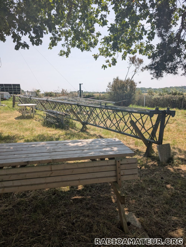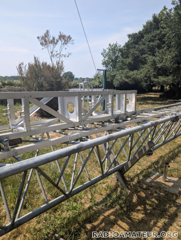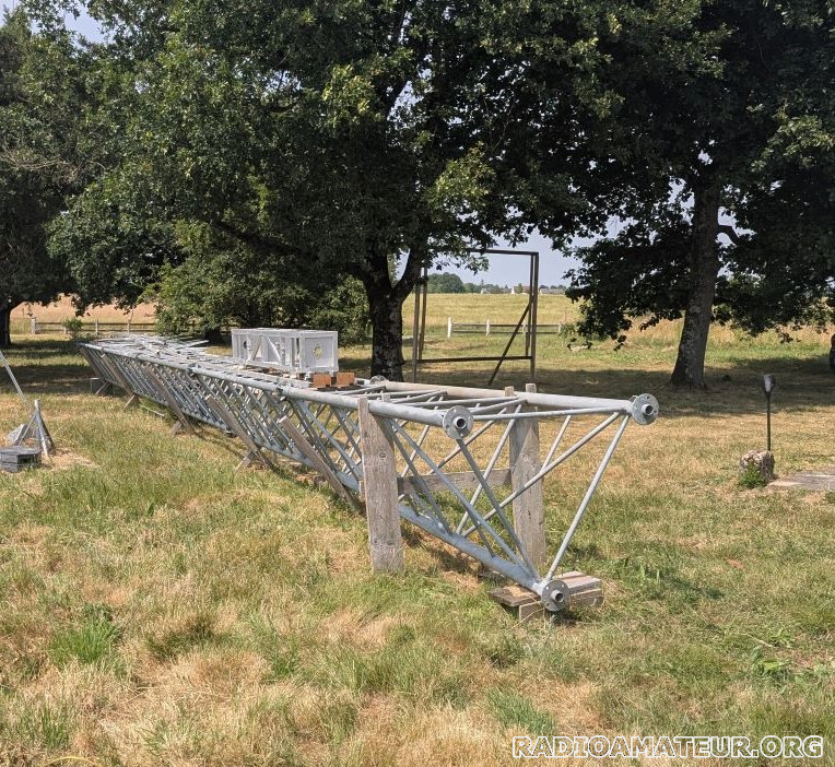 Pylône autoportant composé de 5 éléments de 3m mètres. Le premier élément fait 1m de coté à la base et 70cm en partie haute, les autres éléments font 70cm de coté sur toute la longueur. D'autres éléments sont disponibles mais certains sont abimés. Système de chariot coulissant à finaliser. Cage pour rotor. A prendre sur place, le pylône est déjà démonté.