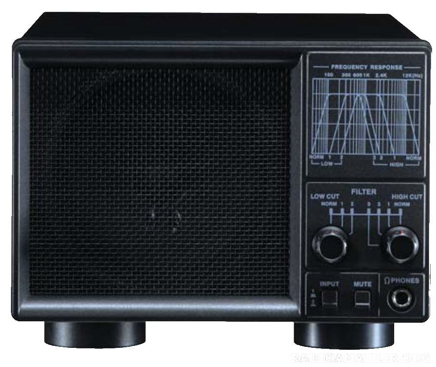 Haut-parleur de bureau, optiquement et électriquement conçu pour s'adapter au récepteur IC-R8600, avec alimentation intégrée AD-55NS. Le haut-parleur est équipé d'un support pliable qui lui donne le même angle que le récepteur. Deux câbles fixes, l'un pour la sortie CC vers l'IC-R8600, l'autre pour l'entrée audio avec fiche téléphone de 3,5 mm. Câble CA amovible inclus. Courant de sortie max. 2A.