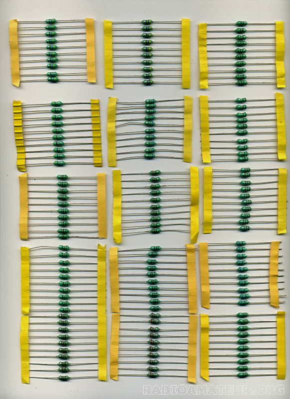 Lot de 150 inductances axiales miniatures neuves. Dimensions: 8 mm x 3,5 mm. 15 valeurs différentes, 10 selfs par valeur. - 10 selfs axiales de 1 µH. - 10 selfs axiales de 2,2 µH. - 10 selfs axiales de 4,7 µH. - 10 selfs axiales de 10 µH. - 10 selfs axiales de 22 µH. - 10 selfs axiales de 47 µH - 10 selfs axiales de 68 µH - 10 selfs axiales de 100 µH .- 10 selfs axiales de 150 µH .- 10 selfs axiales de 220 µH - 10 selfs axiales de 330 µH. - 10 selfs axiales de 470 µH. - 10 selfs axiales de 680 µH. - 10 selfs axiales de 1 mH. - 10 selfs axiales de 2,2 mH.