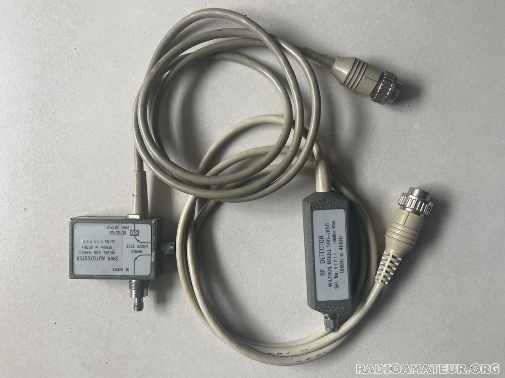 Vds Pont réflectométrie et détecteur WILTRON 10 MHz à 40 GHz pour analyseur WILTRON/ANRITSU modèle 560, 56100A ou 54100A, etc... SWR Autotester 560-98K50 10 MHz à 40 GHz Directivité : 35 dB @ 10 MHz-18 GHz ; 32 dB @ 18-26,5 GHz ; 30 dB @ 26,5-40 GHz RF Detector 560-7K50 Connectique 2,92 mm compatible SMA Bon état fonctionnel, vérifié sur analyseur scalaire WILTRON