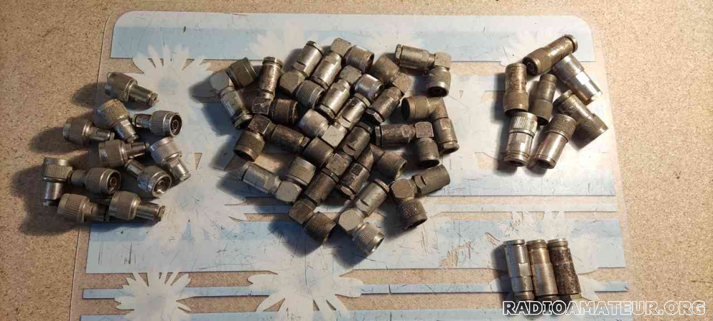 Type N mâle, femelle, mâle à angle droit ( voir photo ) Prix 2 € pièce + port selon quantité