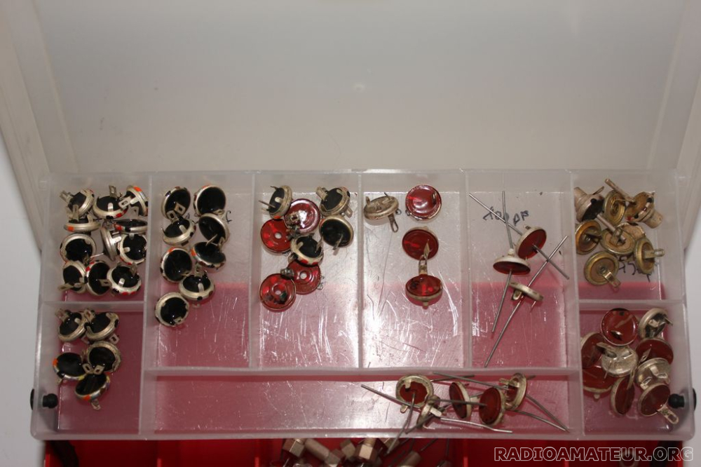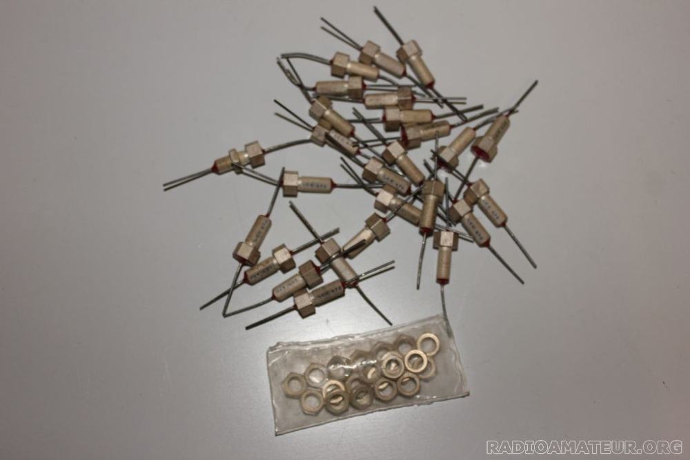 Vente de 58 by pass neuf 10Pf x 5 sortie à fil ,27Pf x 11, 68Pf x 5, 100Pf x3 sortie fil, 100Pf x 9 , 150Pf x 8, 200Pf x 4, 300Pf x 4, 750Pf x 8, 4Nf x 5 soit 58 piéces