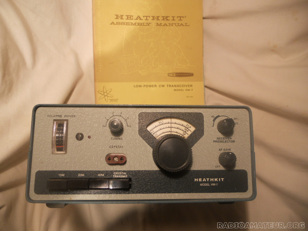 Heathkit HW7 QRP trois bandes CW. Très bon état. Fonctionne en réception et en émission mais n'a pas fonctionné depuis quelques années , mauvais contacts sur le clavier donc nécessite une révision... L'emplacement pour une prise chinch a été percé sur un côté, sinon aucun bricolage ou modification sur le circuit imprimé. Documentation d'origine fournie, d'autres photos disponibles.