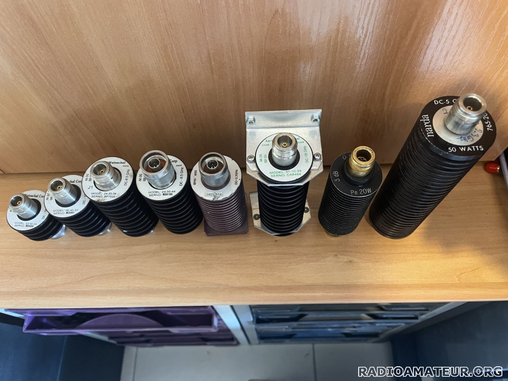 Vds différents atténuateurs de puissance RF et Hyper connectique N: - 40 dB - 10W - DC-18 GHz modèle 23-40-34 Weinschel Corp. : 130 euros - 20 dB - 50W - DC-8,5 GHz modèle 24-20-34 Weinschel Corp. : 100 euros - 30 dB - 50W - DC-8,5 GHz modèle 24-30-44 Weinschel Corp. : 100 euros - 30 dB - 50W - DC-2,3 GHz modèle KAT30O4FA0010 KMW : 80 euros - 10 dB - 50W - DC-18 GHz modèle 47-10-34 Weinschel Corp. : 180 euros - 10 dB - 50W - DC-8,5 GHz modèle 24-10-34 Weinschel Corp. : 100 euros - 3 dB - 20W - DC-4 GHz sans indication de référence et marque : 75 euros - 10 db - 12W - DC-4 GHz sans indication de référence et marque : 75 euros Possibilité enlèvement sur place ou envoi via Mondial relay